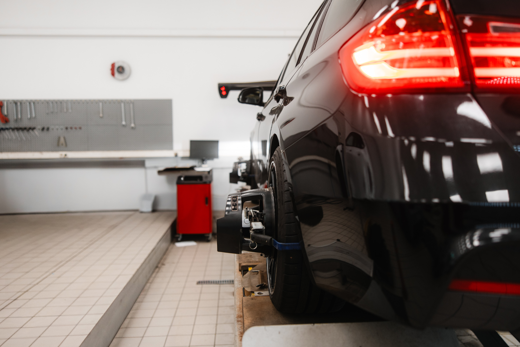 Anschließend erfolgt die exakte Einstellung der berechneten Werte in einem mehrstufigen Prozess. Jede geometrische Änderung wird bewusst einzeln vorgenommen. Nach jedem Einstellschritt wird das Fahrzeugbewegt und erneut vermessen, um Setz- und Rückstellprozesse im Fahrwerk zu berücksichtigen.